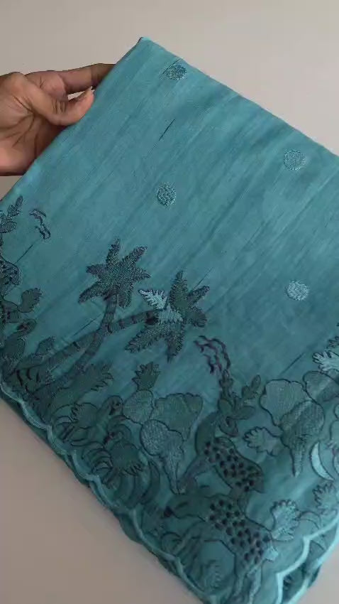 FABLOZ Women's Pure Matka Silk Saree with Multi-Thread Embroidery & Designer Blouse